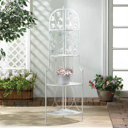 Butterfly-Themed White Iron Four-Tier Corner Shelf