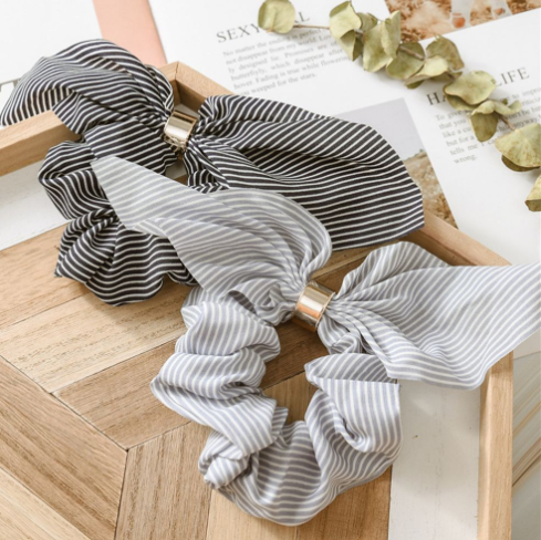 Chiffon Metal Buckle Striped Bowel Hair Ring