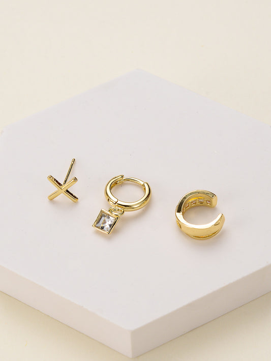 Cresent Stud Earring with Austrian Crystals - 14K Gold Plated