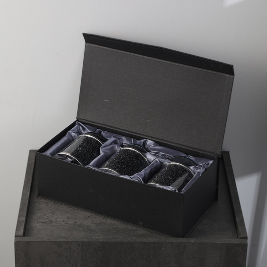 Exquisite Three Glass Canister Set, Black Crushed Diamond Glass